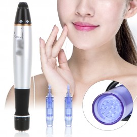Dr. PEN ULTIMA A1 (terapia de microagujas) DERMAPEN DE CABLEMúltiples microagujas que perforan la piel de manera vertical estimulando los fibroblastos y los factores de crecimiento provocando el rejuvenecimiento y la regeneración de la piel sin daño epidermal, El Dermapen aumenta la eficacia de la absorción de los productos, mientras que reduce el dolor y los efectos secundarios. Tan eficaz como la terapia de láser fraccionado, láser y peelings químicos.Es un revolucionario dispositivo que se conecta a la corriente eléctrica que tiene la asombrosa capacidad de estimular naturalmente colágeno y elastina sin dañar la piel. Puede ser utilizado tanto por hombres y mujeres, y está diseñado para suavizar las líneas finas y arrugas, reducir el tamaño de los poros, mejorar las cicatrices (incluyendo cicatrices de acné), mejora la apariencia de las estrías / textura de la piel estriada y celulitis. Además estudios clínicos demuestran que también funciona para alopecia (caída del cabello), tanto para hombres como para mujeres.Sobre todo, lo más sorprendente es el precio, una fracción que otras alternativas.CARACTERISTICAS1. Velocidad automática (velocidad máx. 8000 ~ 18000 veces por minuto)2. Dispositivo que se conecta a la corriente eléctrica3. Modos automáticos para estimular la micro regeneración de la piel con micro agujas:a. Favorecer la absorción de químicos, hasta 40 veces de lo normal, además mejora las cicatrices del acné hasta un 50%.4. Mejora el brillo y la elasticidad de la piel, más que el láser o sustancias químicas y no es invasivo.5. La profundidad de la Microaguja se puede ajustar (0,25 mm-2,0 mm), mejorado en gran medida el tratamiento.6. Cinco velocidades diferentes7. Fácil de operar en áreas pequeñas, o partes radiales8. Más rápida y eficiente que las micro agujas manuales.9. Debido al movimiento vertical de alta velocidad puede reducir el dolor a un mínimo,10. Utilizando agujas desechables evitas la infección cruzada.11. Para eliminación de arrugas / eliminación del acné / mejorar las cicatrices.12. Reduce Estrías agravadas, mejora las arrugas y líneas de expresión, cicatrices del acné y regeneración de heridas. INTRUCCIONES DE USOSiga estos 3 pasos de punción para estimular los canales de regeneración:Horizontal, vertical diagonalCada paso tiene que ser repetido 3 veces .Elija la aguja adecuada para el propósito del tratamiento.Utilice una Microaguja por persona.No forcé el dispositivo en la piel, simplemente use una presión suave.Los movimientos oblicuos abarcan mas área que los verticales y horizontales misma intensidadDespués del tratamiento, aplique soluciones post-cuidado para la protección de la piel.Lea el manual incluido con el producto.Utilice un protocolo para eliminación de desechos punzo cortantes ESPECIFICACIONES:Material de la aguja: aleación de titanioNúmero de agujas incluidas: 2pcs x 12 agujasEl tamaño de la aguja: 2.2cm (ancho) * 2cm (diámetro)Tamaño del paquete a enviar: 19 * 14.5 * 5cm x unidad